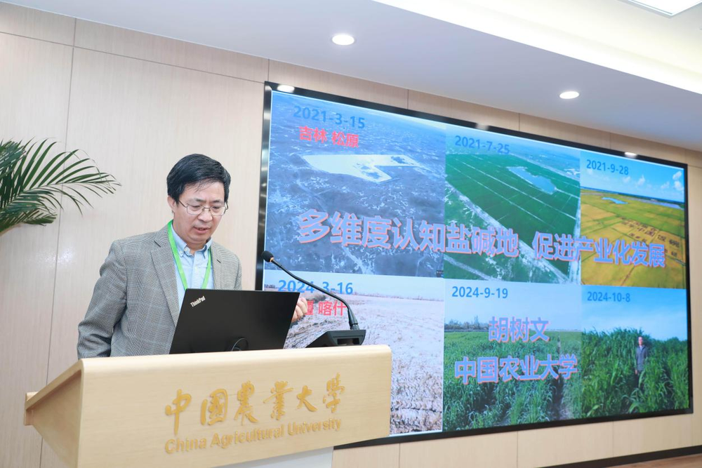 中國農(nóng)業(yè)大學(xué)資源與環(huán)境學(xué)院胡樹文教授以“多維度認(rèn)證鹽堿地 促進(jìn)產(chǎn)業(yè)化發(fā)展”為主題,系統(tǒng)展示了其團(tuán)隊(duì)近二十年來構(gòu)建的鹽堿地治理工程化技術(shù)體系。介紹了與公司合作的吉林乾安鹽堿地整治項(xiàng)目等經(jīng)典案例,彰顯了校企合作在推動(dòng)鹽堿地產(chǎn)業(yè)化發(fā)展中的務(wù)實(shí)成效。